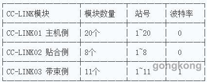 5、通信模塊的選擇;設備用到大量的輸入輸出點,所以選擇了遠程輸入輸出模塊,通過三菱專用的網絡CC-LINK網,通過T型和Y型框架,把現場設備層連接起來。這里根據現場設備的工藝,選用了3個QJ61BT11N。