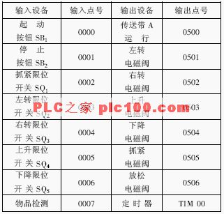 根據(jù)圖3所示的機(jī)械手動(dòng)作流程圖,可以確定電氣控制系統(tǒng)的I/O點(diǎn)分配,如表1所示。
