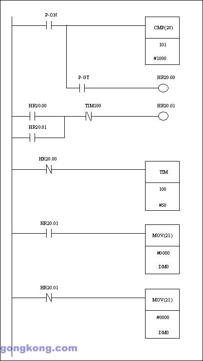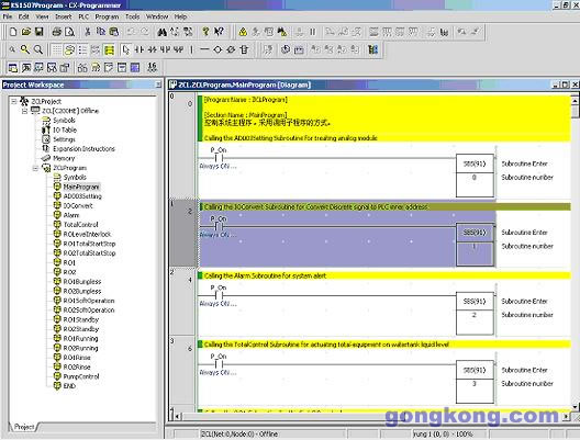 對于OMRON PLC C200HE控制器的編程軟件CX-Programmer來說,通過簡單的指令既可以實現子程序調用。例如: