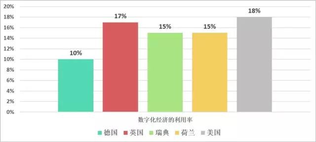 截至2017年上半年的統(tǒng)計結(jié)果,德國數(shù)字化產(chǎn)業(yè)對GDP貢獻僅為5.4個百分點,根據(jù)麥肯錫研究機構(gòu)數(shù)據(jù),德國對于數(shù)字化經(jīng)濟的利用僅僅在總量的10%左右,低迷的數(shù)字化經(jīng)濟增長會讓德國至2025年的八年中失去5000億歐元的產(chǎn)值。